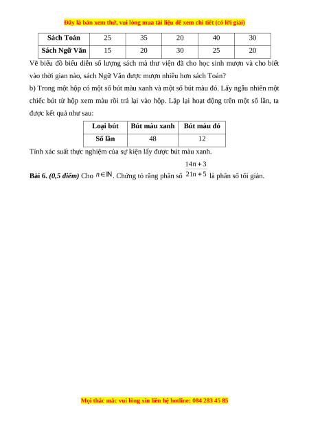 a) Thư viện trường THCS đã ghi lại số lượng sách Toán và Ngữ Văn mà các bạn học