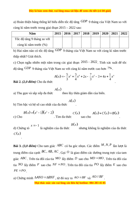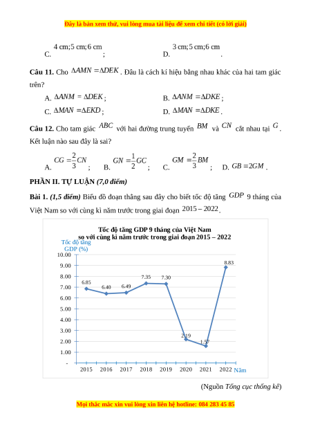 Bài 1. (1,5 điểm) Biểu đồ đoạn thẳng sau đây cho biết tốc độ tăng 9 tháng của