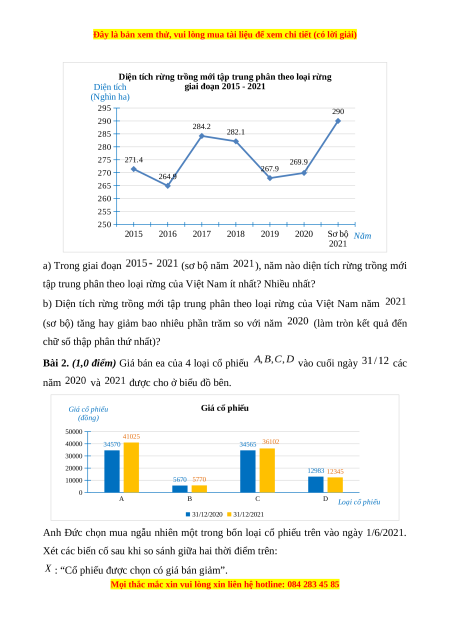 được cho ở biểu đồ bên. Giá cổ phiếu Giá cổ phiếu (đồng) 50000 41025 40000 34570 34565 36102 30000 20000 12983 12345 10000 5670 5770 0 A B C D Loại cổ phiếu 31/12/2020 31/12/2021