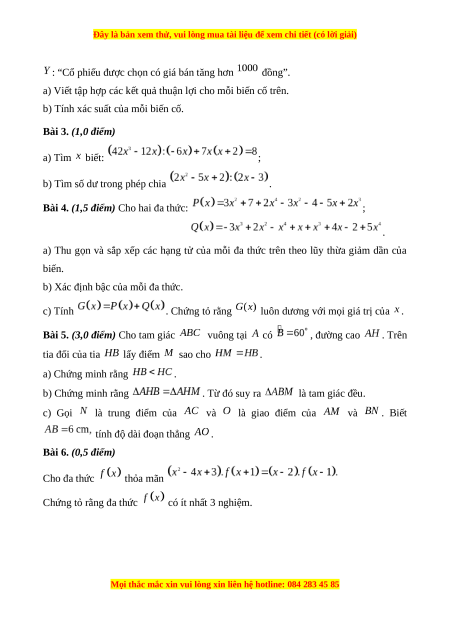 Bài 6. (0,5 điểm) Cho đa thức thỏa mãn