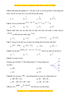 Câu 7. Trong các đa thức sau, đa thức nào không phải là đa thức một biến? A. ; B. ; C. ; D. . Câu 8. Cho đa thức