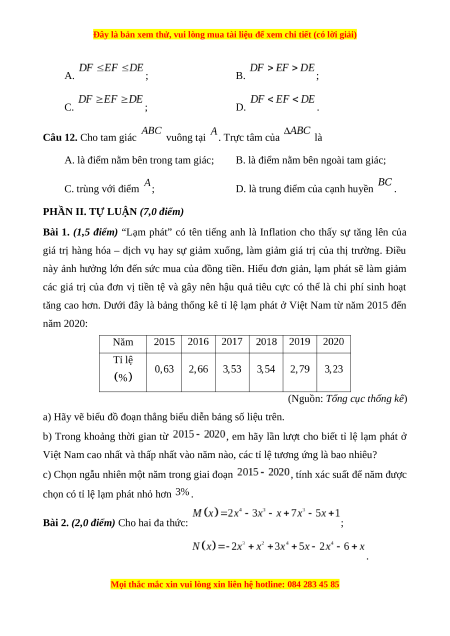 Bài 1. (1,5 điểm) “Lạm phát” có tên tiếng anh là Inflation cho thấy sự tăng lên của