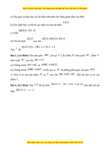 Bài 2. (2,0 điểm) Cho hai đa thức: ; .