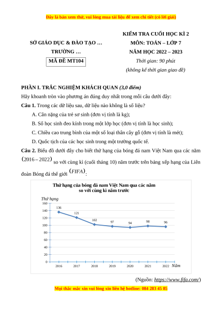 NĂM HỌC 2022 – 2023 MÃ ĐỀ MT104 Thời gian: 90 phút
