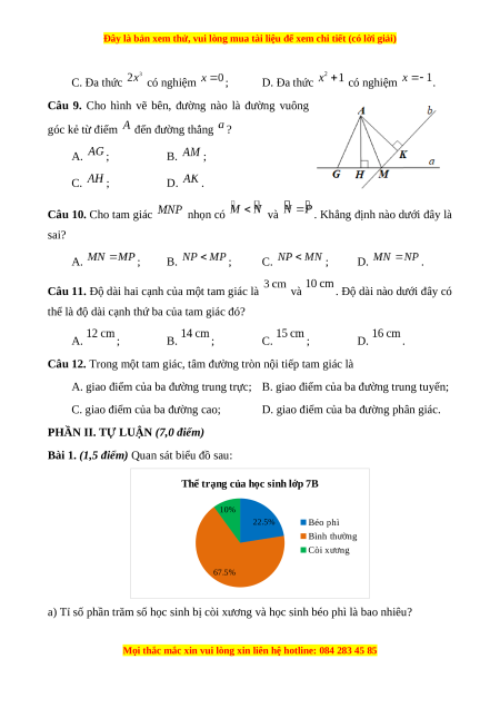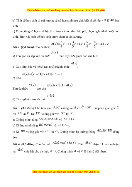 Câu 8. Khẳng định nào dưới đây là đúng? A. Đa thức không có nghiệm; B.