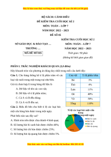 ĐỀ KIỂM TRA CUỐI HỌC KÌ 2 MÔN: TOÁN – LỚP 7