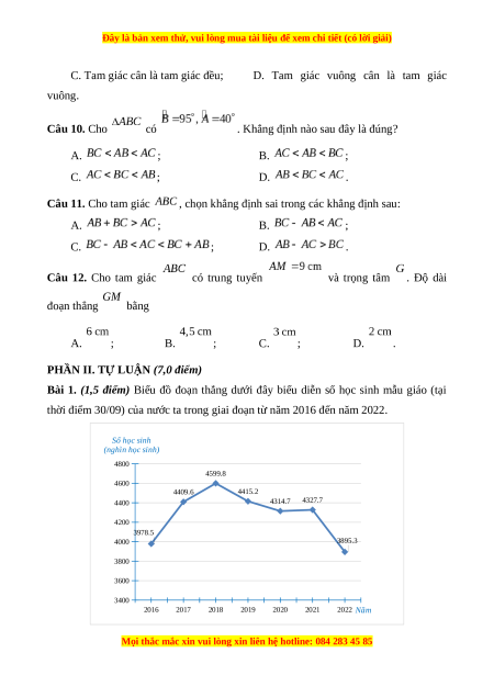 Bài 1. (1,5 điểm) Biểu đồ đoạn thẳng dưới đây biểu diễn số học sinh mẫu giáo (tại