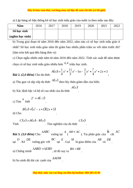 Bài 2. (2,0 điểm) Cho đa thức ;