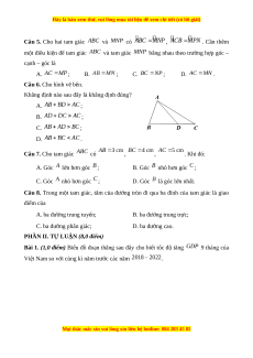Câu 5. Cho hai tam giác và có , . Cần thêm