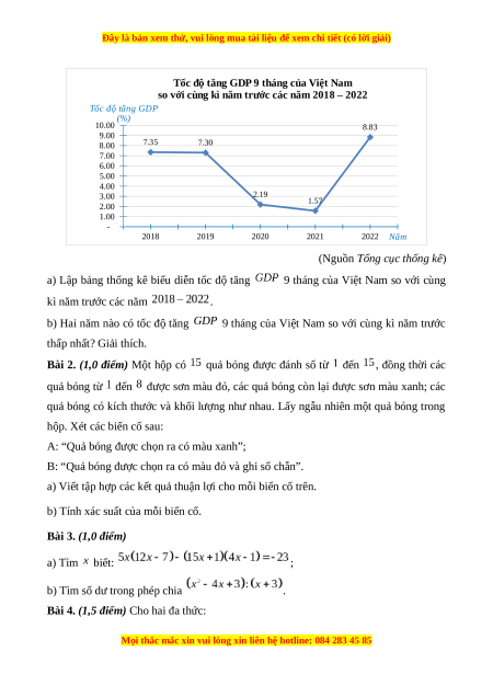 Bài 1. (1,0 điểm) Biểu đồ đoạn thẳng sau đây cho biết tốc độ tăng 9 tháng của