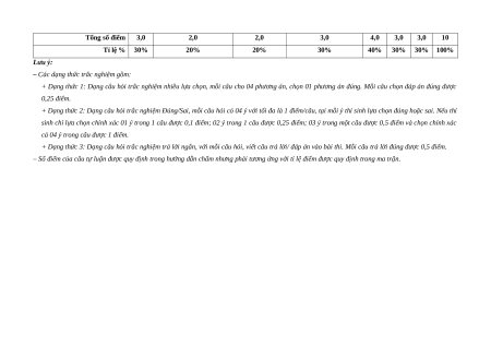 – Số điểm của câu tự luận được quy định trong hướng dẫn chấm nhưng phải tương ứng với tỉ lệ điểm được quy định trong ma trận.