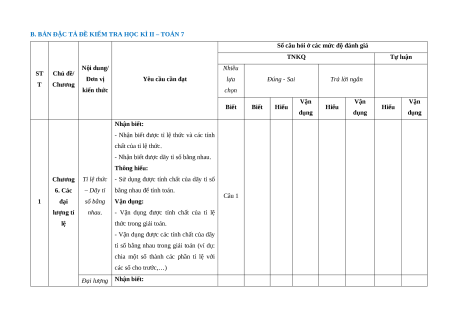 A. MA TRẬN ĐỀ KIỂM TRA HỌC KÌ II – TOÁN 7