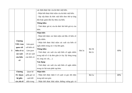 thành kế hoạch và năng suất lao động,….) 2 Chương Biểu thức Nhận biết: Bài 2.1 25% VIII. Biểu đại số