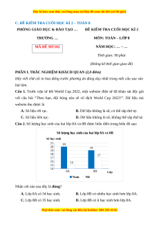 ĐỀ KIỂM TRA CUỐI HỌC KÌ 2 MÔN: TOÁN – LỚP 8 ĐỀ SỐ 02