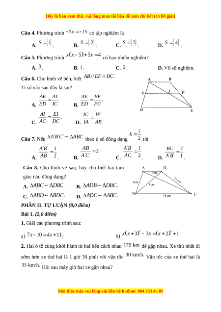 Tam giác đồng Định lí Thalès trong 1 1 1 37,5%