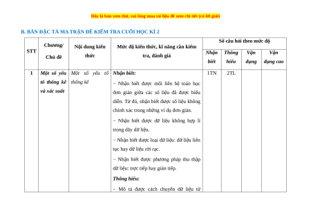 B. BẢN ĐẶC TẢ MA TRẬN ĐỀ KIỂM TRA CUỐI HỌC KÌ 2