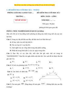 ĐỀ KIỂM TRA CUỐI HỌC KÌ 2 MÔN: TOÁN – LỚP 8 ĐỀ SỐ 06