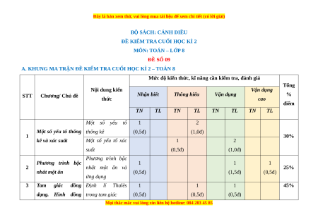 - Tailieugiaovien.com.vn giới thiệu bộ 10 đề cuối kì 2 gồm đầy đủ ma trận và lời giải chi tiết môn Toán 8 Cánh diều mới nhất năm 2024 nhằm giúp Giáo viên có thêm tài liệu tham khảo ra đề thi Toán lớp 8.