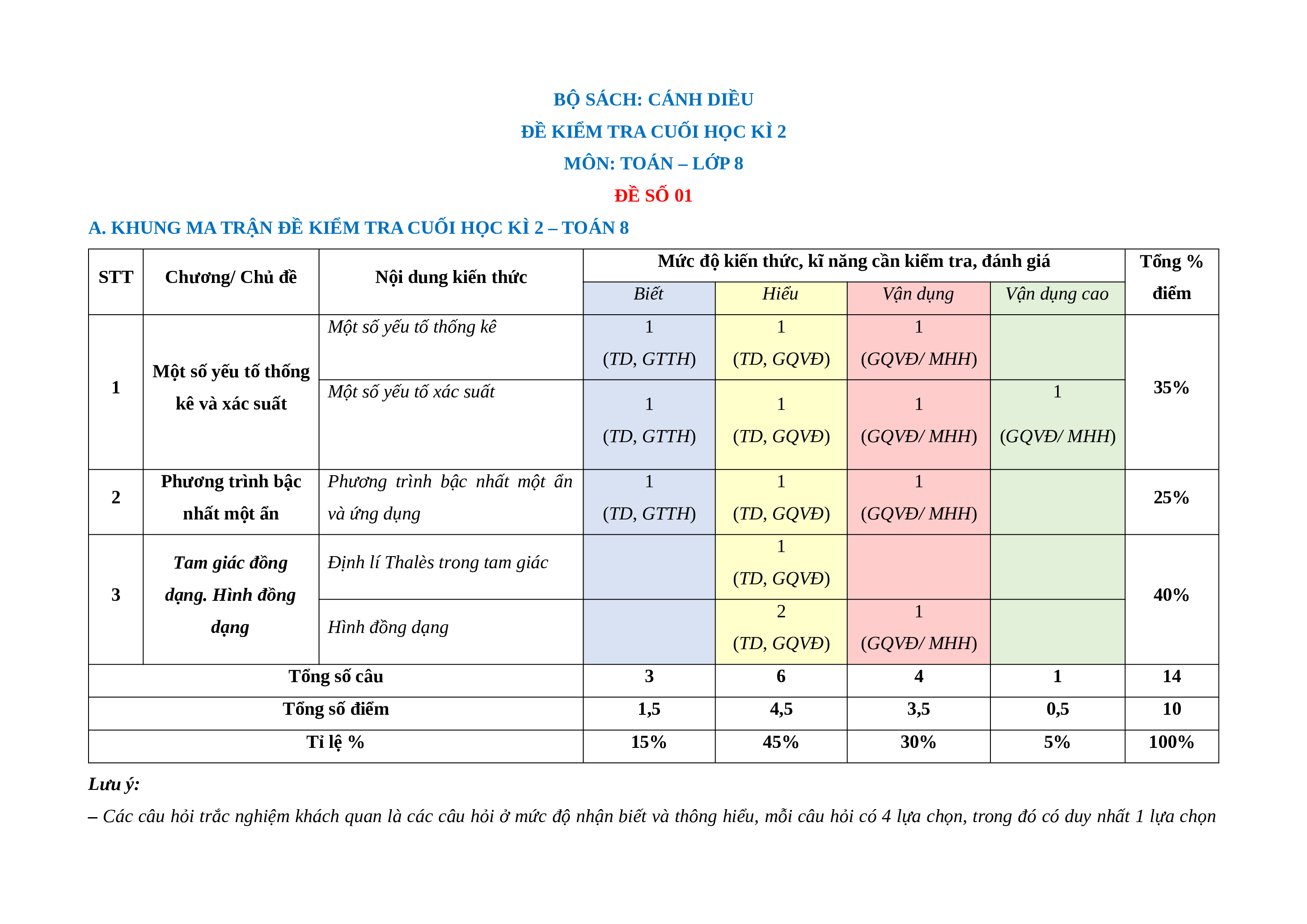 => Tham khảo thêm: Bộ 15 đề thi cuối kì 2 Toán 8 Cánh diều Cấu trúc mới