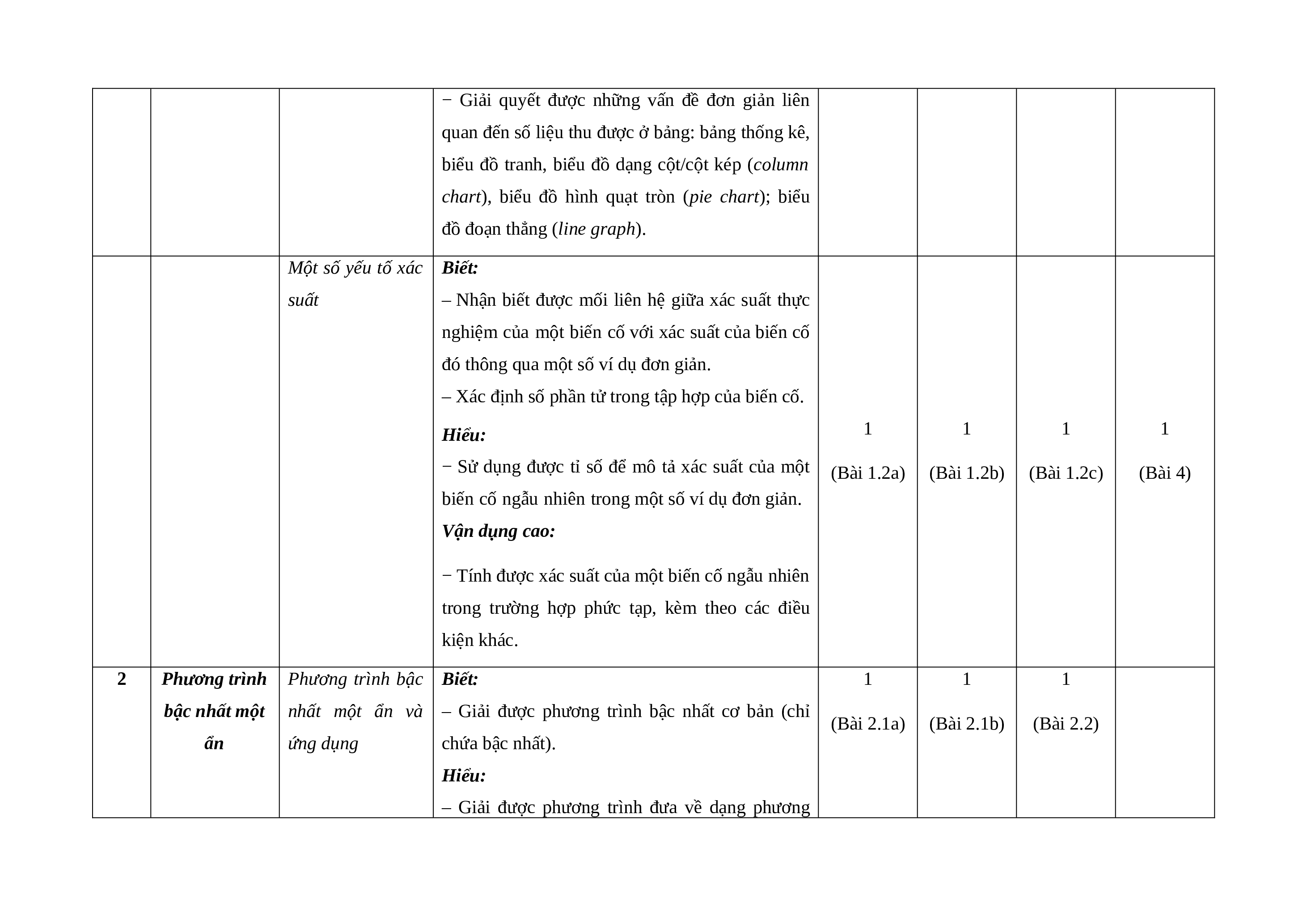 Một số yếu tố xác suất 1 35% kê và xác suất 1 1 1 (TD, GTTH) (TD, GQVĐ) (GQVĐ/ MHH) (GQVĐ/ MHH) Phương trình bậc