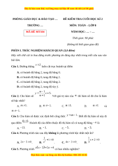 ĐỀ KIỂM TRA CUỐI HỌC KÌ 2 TRƯỜNG … MÔN: TOÁN – LỚP 8 MÃ ĐỀ MT104 NĂM HỌC: … – … Thời gian: 90 phút