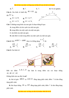 theo tỉ số đồng dạng thì A. . B. . C. . D. . Câu 9. Cho hình vẽ: B' C' B C I A D A' D' Biết các điểm