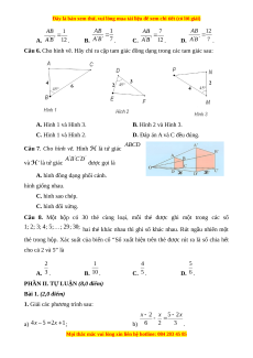 Câu 6. Cho hình vẽ. Hãy chỉ ra cặp tam giác đồng dạng trong các tam giác sau: A. Hình 1 và Hình 3. B. Hình 2 và Hình 3. C. Hình 1 và Hình 2.