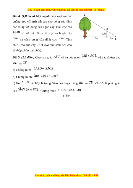 cọc trùng với bóng của ngọn cây. Biết cọc cao D
