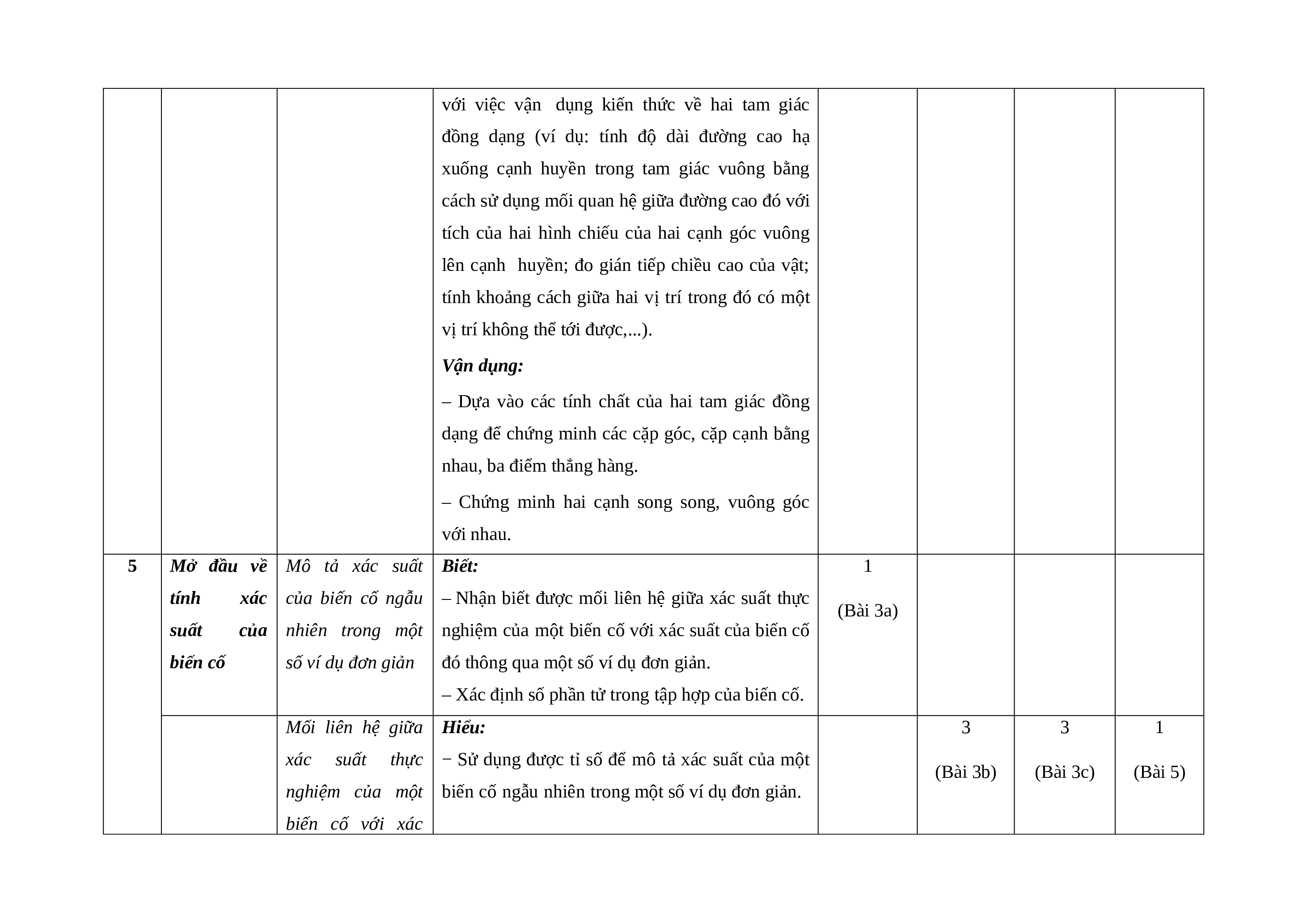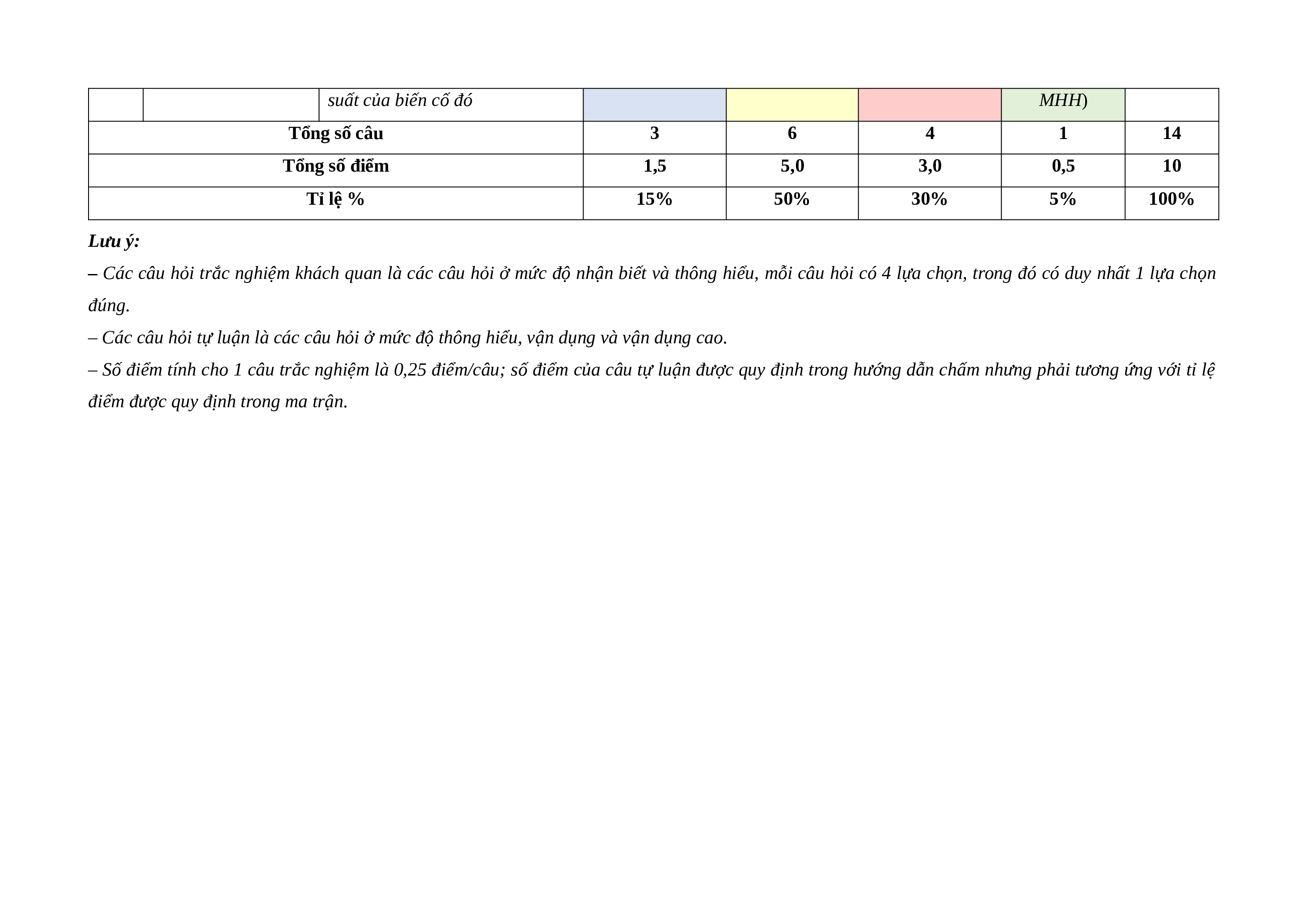 suất của biến cố đó MHH) Tổng số câu 3 6 4 1 14 Tổng số điểm 1,5 5,0 3,0 0,5 10 Tỉ lệ % 15% 50% 30% 5% 100% Lưu ý:
