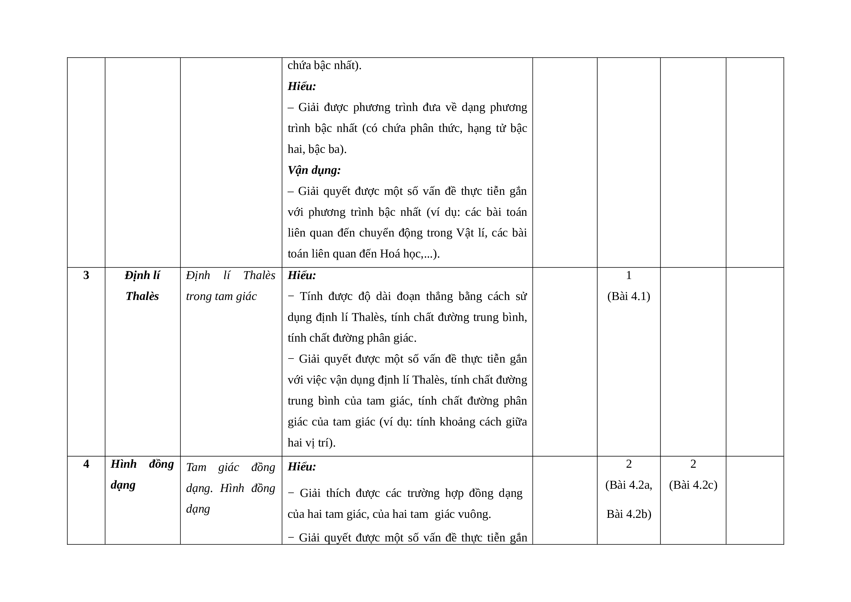 – Giải được phương trình bậc nhất cơ bản (chỉ (Bài 2.1a) (Bài 2.1b) (Bài 2.2) chứa bậc nhất). Hiểu: