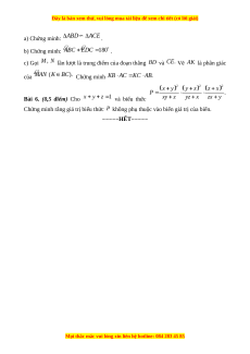 Bài 6. (0,5 điểm) Cho và biểu thức