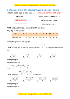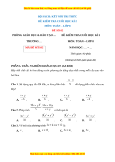ĐỀ KIỂM TRA CUỐI HỌC KÌ 2 TRƯỜNG … MÔN: TOÁN – LỚP 8 MÃ ĐỀ MT102 NĂM HỌC: … – … Thời gian: 90 phút