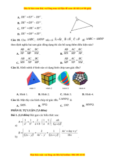 về dạng phân thức nào sau đây? A. . B. . C. . D. . Câu 2. Phép tính có kết quả là A. . B. . C. . D. .