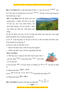 Bài 2. (1,5 điểm) Một xe đạp khởi hành từ điểm , chạy với vận tốc . Sau