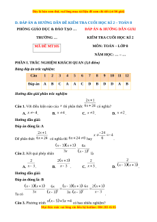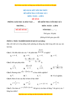 ĐỀ KIỂM TRA CUỐI HỌC KÌ 2 TRƯỜNG … MÔN: TOÁN – LỚP 8 MÃ ĐỀ MT105 NĂM HỌC: … – … Thời gian: 90 phút