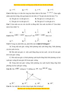 Câu 7. Gieo một con xúc xắc cân đối và đồng chất. Xác suất của biến cố “Gieo được mặt số hai chấm” là A. 1. B. . C. . D. . Câu 8. Nếu theo tỉ số thì theo tỉ số A. . B. . C. . D. .