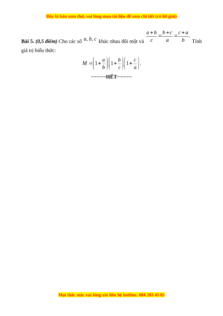 Bài 5. (0,5 điểm) Cho các số khác nhau đôi một và Tính giá trị biểu thức: