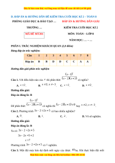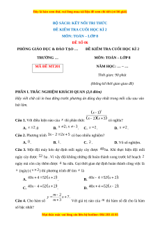 ĐỀ KIỂM TRA CUỐI HỌC KÌ 2 TRƯỜNG … MÔN: TOÁN – LỚP 8 MÃ ĐỀ MT201 NĂM HỌC: … – … Thời gian: 90 phút