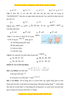 ) thì phương trình để tìm là A. . B. C. . D. Câu 4. Cho hàm số