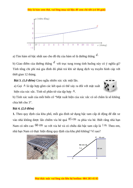 Bài 2. (1,0 điểm) Để sử dụng dịch vụ truyền hình cáp, người dùng phải trả một