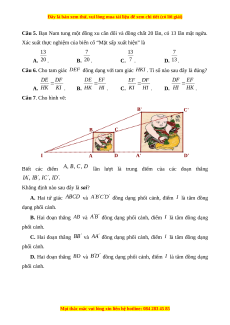 . Tỉ số nào sau đây là đúng? A. . B. . C. . D. . Câu 7. Cho hình vẽ: B' C' B C I A D A' D' Biết các điểm