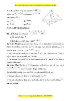 Bài 2. (1,0 điểm) Đồng euro (EUR) là đơn vị tiền tệ chính thức ở một số quốc gia