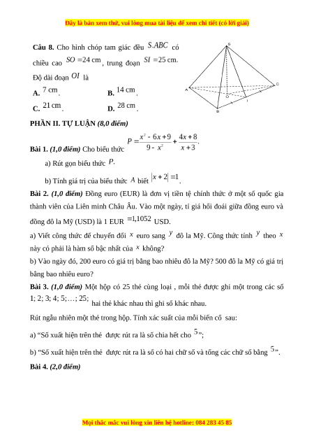 Bài 3. (1,0 điểm) Một hộp có 25 thẻ cùng loại , mỗi thẻ được ghi một trong các số