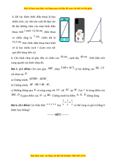 độ dài đường chéo của màn hình điện thoại, biết , điện thoại có chiều rộng là chiều dài là