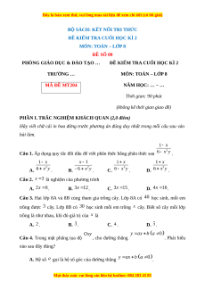 ĐỀ KIỂM TRA CUỐI HỌC KÌ 2 TRƯỜNG … MÔN: TOÁN – LỚP 8 MÃ ĐỀ MT204 NĂM HỌC: … – … Thời gian: 90 phút