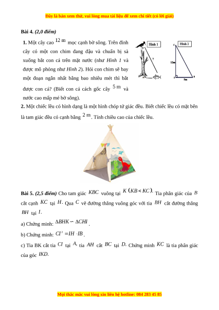 Bài 4. (2,0 điểm) 1. Một cây cao