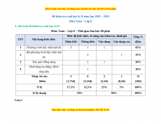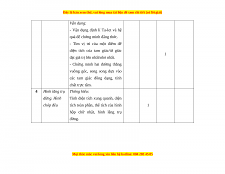 Hình lăng trụ đứng. Hình 4 1 10% chóp đều Tổng: Số câu 3 6 2 1 12 Điểm (1,75đ) (5,25đ) (2,5đ) (0,5đ) (10đ) Tỉ lệ 17,5% 52,5% 25% 5% 100% Tỉ lệ chung 70% 30% 100% Lưu ý: