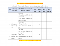 BẢN ĐẶC TẢ MA TRẬN ĐỀ KIỂM TRA CUỐI HỌC KÌ II TOÁN – LỚP 8