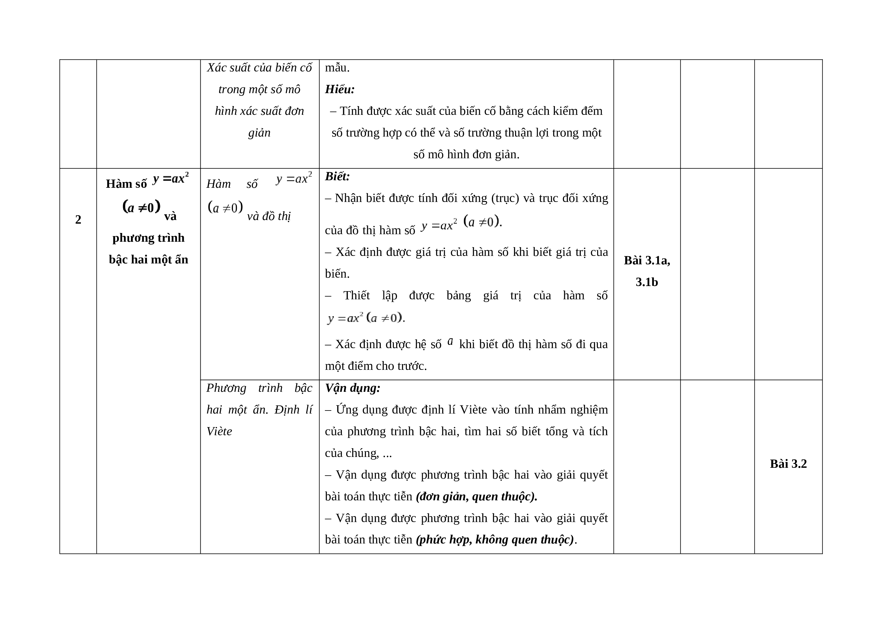 thức của các môn học khác trong Chương trình lớp 9 và trong thực tiễn. Hiểu:
