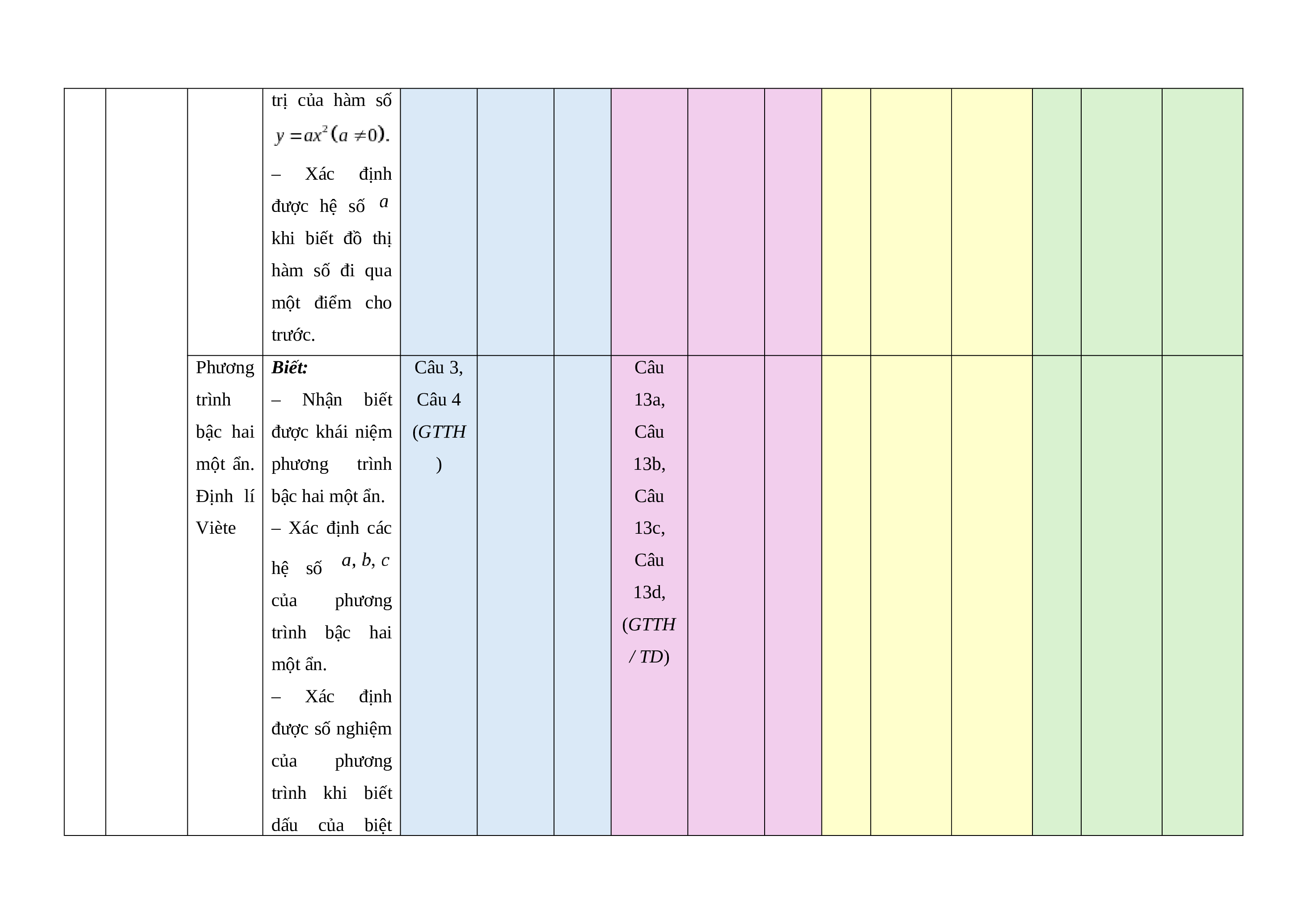Phương và đồ trục đối xứng trình thị của đồ thị hàm bậc hai một ẩn số – Xác định được giá trị của hàm số khi biết giá trị của biến. Hiểu: Câu 2 – Thiết lập (SD được bảng giá CCPT)